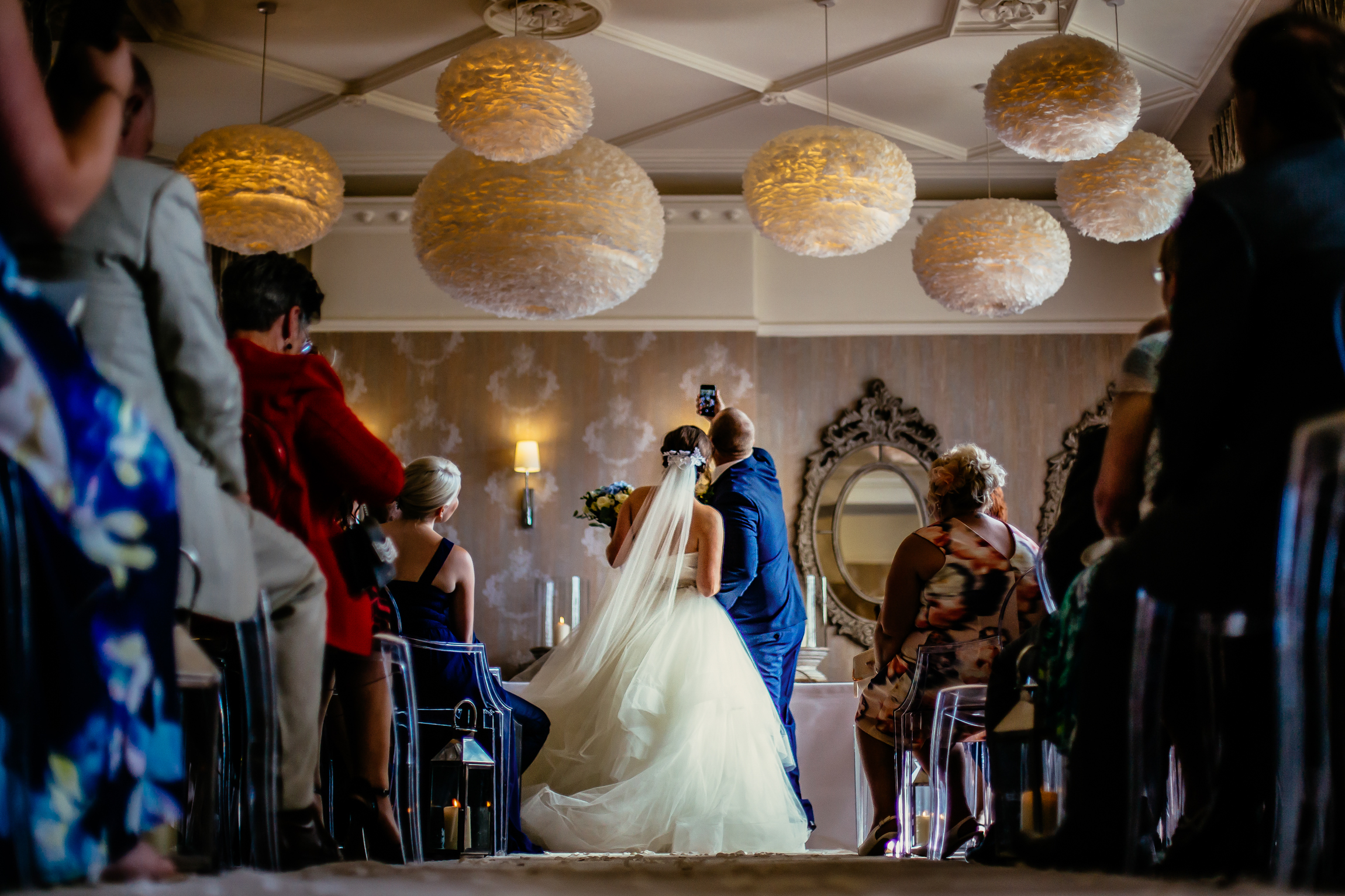 Falcon Manor can accommodate up to 87 seated wedding guests or 150 people for an evening reception. The venue is licensed for civil ceremonies, with indoor and outdoor options available. These settings feature stunning scenery and a charming ambience that helps make for a memorable occasion. Throughout the manor, there are 16 boutique bedrooms for overnight stays. The manor is enveloped by immaculate gardens and grounds, providing plenty of opportunities for photos. Inside, the manor's architecture, which includes a sweeping staircase, blends the home's historical elements with contemporary touches. The manor also has a terrace with awe-inspiring views of the Yorkshire Dales. This venue has plenty of free parking as well as helicopter access. It's long been one of my favourites as a Yorkshire Wedding Photographer, a stark change of pace to the norm as a London Wedding Photographer or Cheshire Wedding Photographer